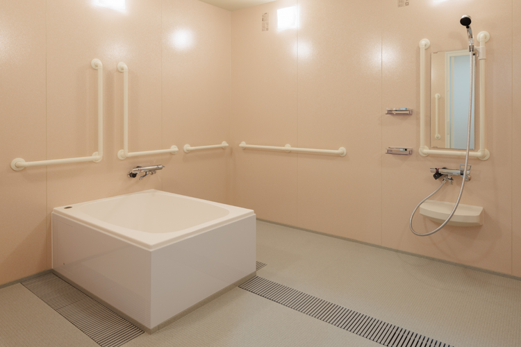 ホームに戻ったらお風呂で疲れをリフレッシュ。入浴は順番に行い、必要に応じて介助します。