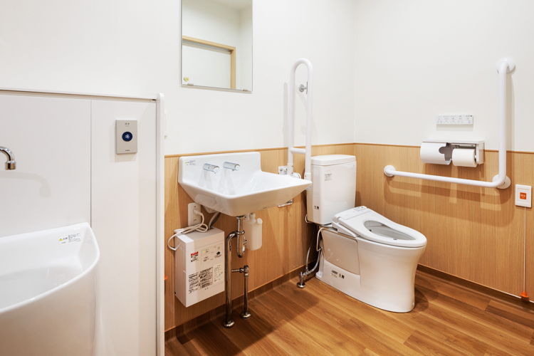 夜間宿直者が常駐しているので有事の際にはすぐに対応できるほか、オストメイト対応トイレなど、安全な環境で安心して暮らすことができます。