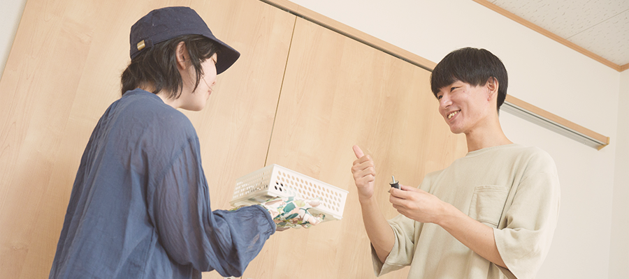 入浴や排泄といった日常生活動作(ADL)の介助、洗濯や掃除などの生活関連動作(IADL)の支援を行っています。また、利用者さまの相談対応、日中活動先やヘルパーなど関係機関との連絡調整も業務としています。
